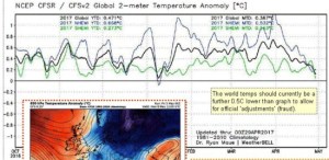 Illustrating his analysis of the data with deft graphwork Corbyn shows that in April 2017 temperatures in both the northern and southern hemispheres plunged dramatically last month. “The mini ice age is in a new phase and is here to stay for at least 20 years.”