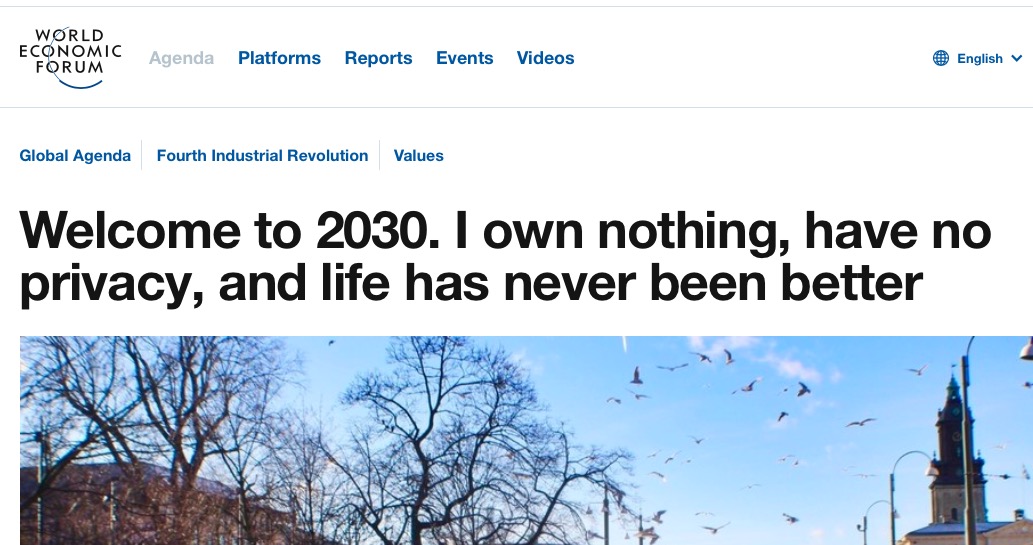 “Welcome to 2030. I own nothing, have no privacy, and life has never been better”