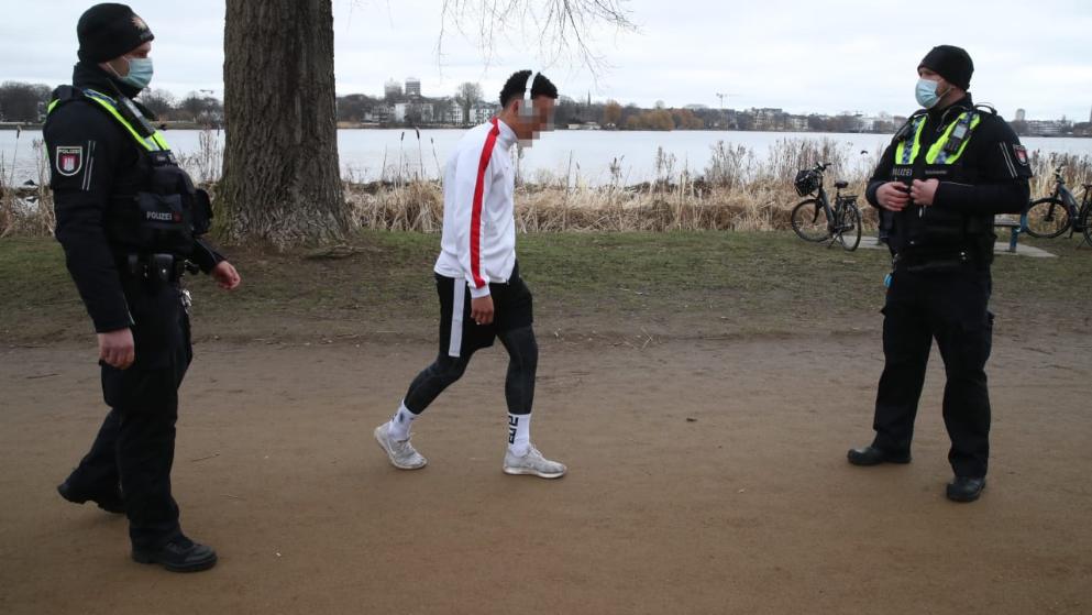 In Hamburg, last weekend, police presence was massively increased in order to enforce the new mask mandates, police helicopters are deployed to search for groups of people of more than two. In the video, a mask sinner is hunted down with a patrol car and almost run over.