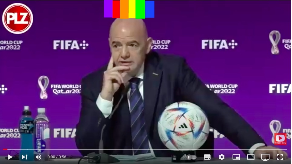 In Clownworld, western globalist activists go to Qatar to try to lecture them about tolerance (where homosexuality is illegal).. FIFA president Gianni Infantino says: “Today I feel Qatari. Today I feel Arabic. Today I feel African. Today I feel gay. Today I feel disabled. Today I feel like a migrant worker.” He claims Westerners are the bad people for colonialism “3000 years ago”. Not Arab nations for executing homosexuals today.